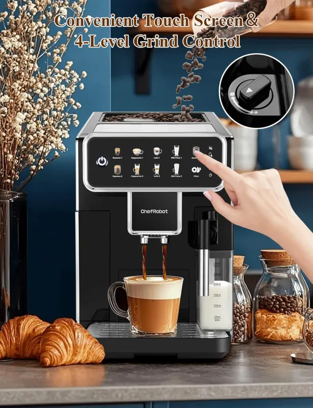 User interface and automation are key factors when assessing the usability of home coffee machines, particularly for users who value both simplicity and customization. The chef robot coffee maker features a responsive touchscreen panel that simplifies drink selection and adjustment settings. Unlike machines with bulky buttons or dials, the touchscreen offers direct control over grind levels, milk froth, and coffee type without navigating confusing menus. Additionally, automated functions like a self-cleaning cycle reduce upkeep burdens, ensuring that maintenance doesn’t take away from the pleasure of brewing. Model comparisons highlight how touchscreen convenience paired with automated alerts—such as notifications for water level, coffee grounds capacity, and milk tank status—enhances reliability and user confidence. In lively households or small social settings where efficiency matters, these smart features prevent interruptions and keep the experience smooth. The chef robot espresso machine’s digital approach combines precision control with effortless operation, making it accessible for people with varying skill levels.